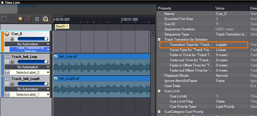 在音轨的属性编辑器中执行过渡类型设置。