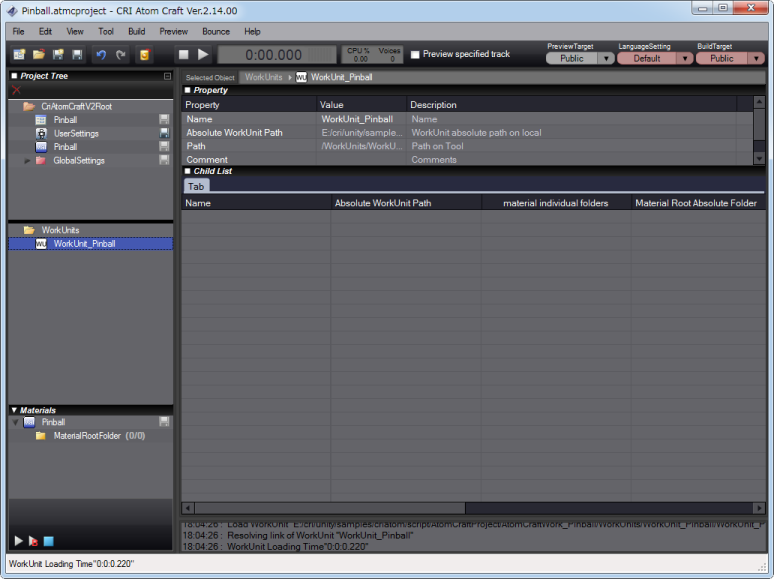 | 存储路径 | /CRIWARE/SDK/unity/samples/criatom/script/AtomCraftProject/AtomCraftWork_Pinball |